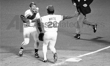 Just A Bit More: This is the game that finally got Dick Howser into the win column in the postseason. After catching the last out and getting a huge hug from Frank White, George sought Dick out and gave him the ball. If you ever get to see that footage you can see how important that moment was for George. You can nearly read his lips as he hands the baseball to his friend and manager “This one is for you – you deserve it.”